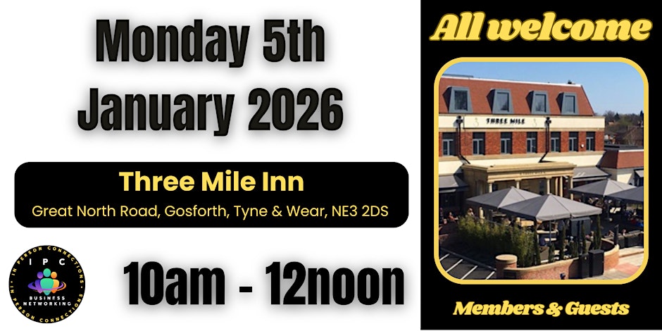 Overview Join us for a casual meet-up over coffee and business chats at Three Mile Inn with IPC - great networking opportunities await! Welcome to BUSINESS NETWORKING GOSFORTH - Three…