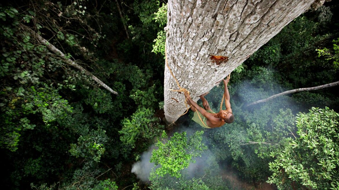 In the dense rainforests of the Amazon and Papua New Guinea, humans live in close communion with nature. The Korowai people of West Papua build homes high in the trees to escape flooding and insects, while the Huaorani in Ecuador use blowpipes and poison darts to hunt monkeys.