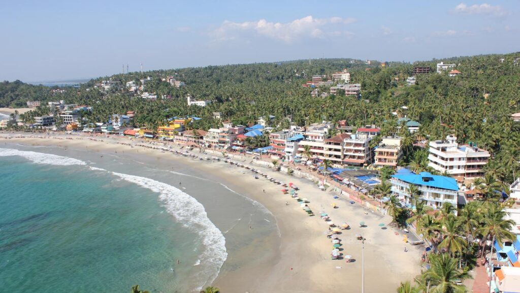 Kovalam is a beautiful coastal town in the southern Indian state of Kerala, famous for its stunning beaches, tranquil waters, and scenic surroundings. Known as one of India’s most popular beach destinations, Kovalam features crescent-shaped shorelines lined with swaying palm trees, golden sands, and gentle waves, making it ideal for swimming, sunbathing, and water sports. The iconic Lighthouse Beach, with its red-and-white striped lighthouse offering panoramic views of the Arabian Sea, is a major attraction. Kovalam is also known for its Ayurvedic spas, yoga centres, and vibrant beachside cafes, offering visitors a perfect mix of relaxation and rejuvenation. With its laid-back charm, natural beauty, and warm hospitality, Kovalam is a must-visit destination for beach lovers and those seeking a peaceful seaside getaway.
