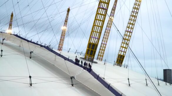 The idea of climbing the roof of The O2 was born from the venue’s unique architectural design. The O2, originally the Millennium Dome, features a vast white tensioned fabric roof supported by twelve towering yellow masts, resembling the spokes of a giant wheel. The Dome’s size and distinctive shape inspired a new way to engage visitors beyond the traditional entertainment offerings.